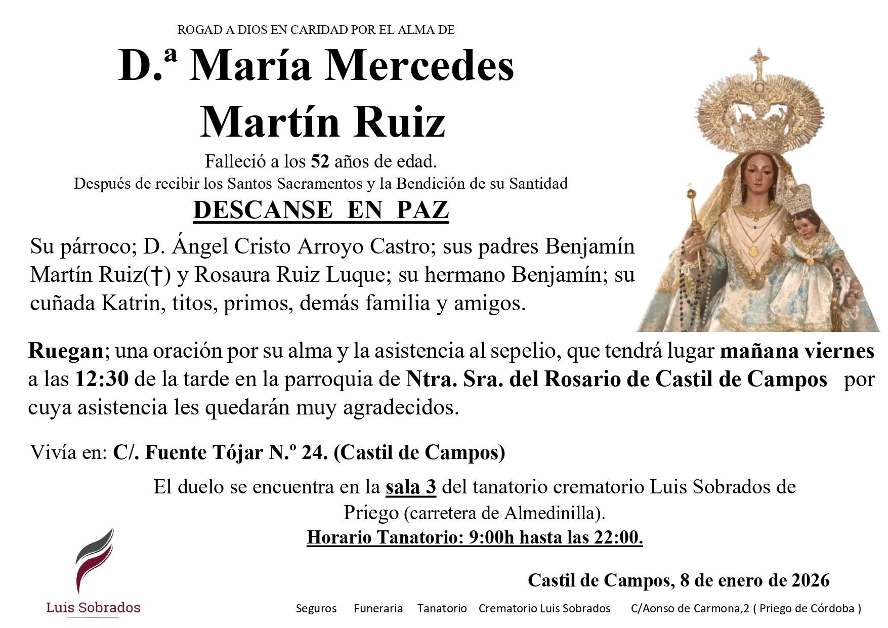 Sepelio de D.ª María Mercedes Martín Ruiz.